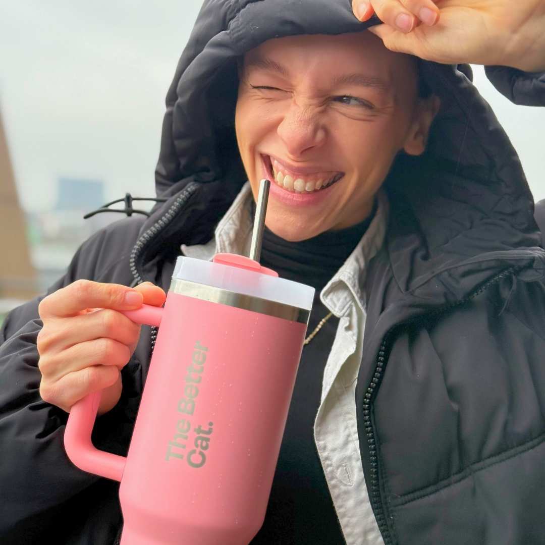 gibt’s den limitierten Thermobecher GRATIS dazu - unser edelster Becher ever (und ja, er war schon mal schneller ausverkauft als du „Miau“ sagen konntest). 😹
