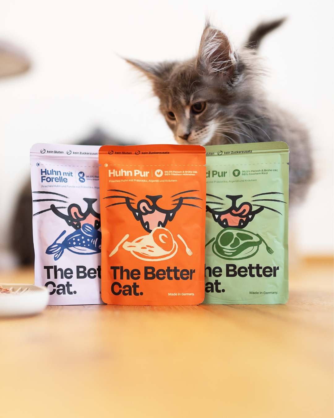 "Eine gesunde Ernährung ist der erste Schritt zu einem glücklichen Katzenleben. Deshalb haben wir The Better Cat entwickelt um die Gesundheit von Katzen mit ihrem Futter zu fördern. Wir haben besonderes auf einen hohen Anteil von Fleisch, Vitaminen und Mineralstoffen geachtet und alles weggelassen, was nicht in Katzenfutter gehört."
