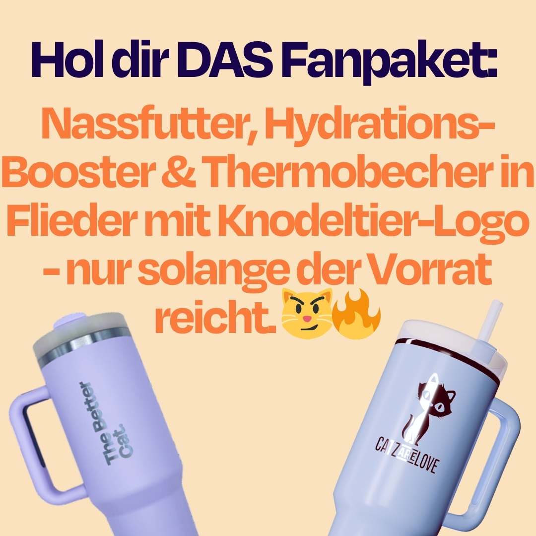 Nur für kurze Zeit: Das streng limitierte Catzarelove Summer Bundle – inkl. Flieder-Thermobecher mit Catzarelove-Gravur 🐱☀️